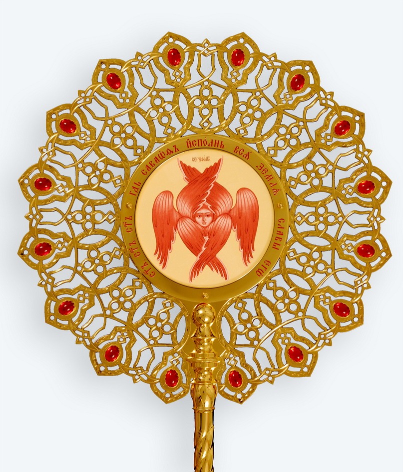 Позолоченные рипиды, украшенные металлическими узорами и камнями, станут не только символическим напоминанием об ангельском мире, но и украшением богослужения.