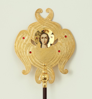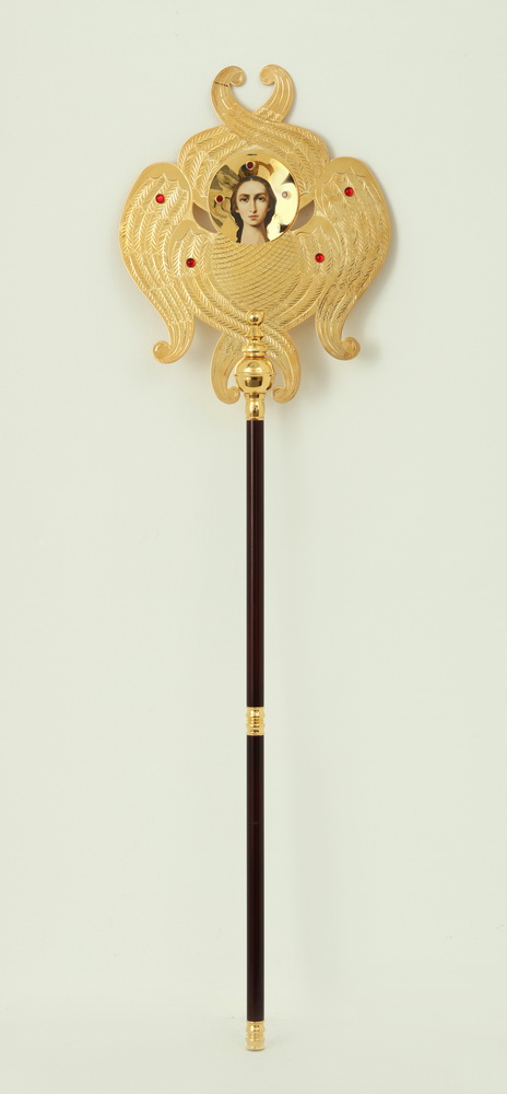 Позолоченные рипиды, украшенные металлическими узорами и камнями, на благородном деревянном древке станут не только символическим напоминанием об ангельском мире, но и украшением богослужения.