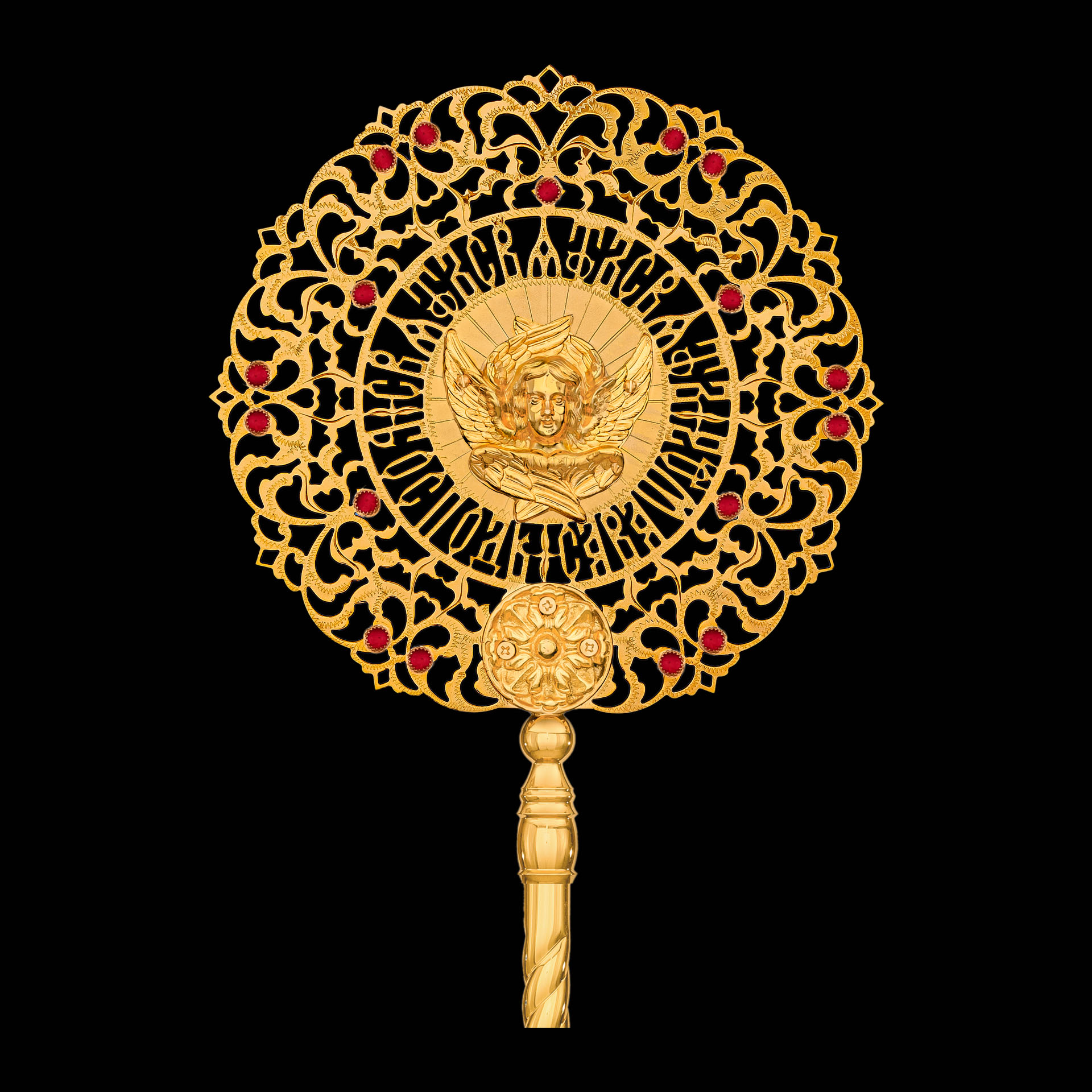 Позолоченные рипиды, украшенные металлическими узорами и камнями, станут не только символическим напоминанием об ангельском мире, но и украшением богослужения.