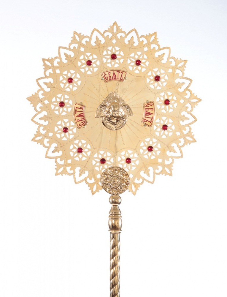 Позолоченные рипиды, украшенные металлическими узорами и камнями, станут не только символическим напоминанием об ангельском мире, но и украшением богослужения.
