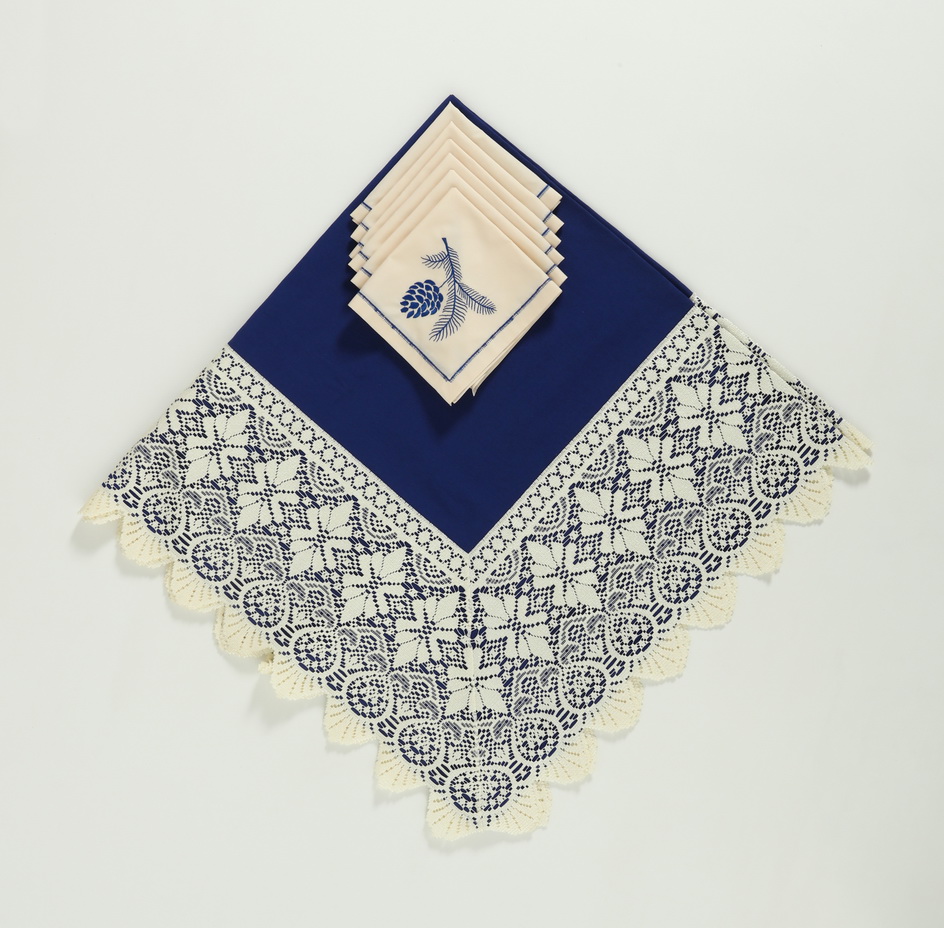 Декоративные элементы: кружево на скатерти, автоматическая вышивка на салфетках.