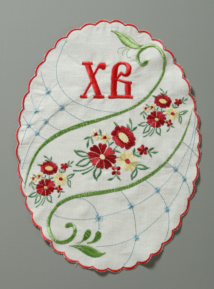 Салфетка церковная пасхальная вышитая лен овальная 25х34см (рисунок в ассортименте) №2