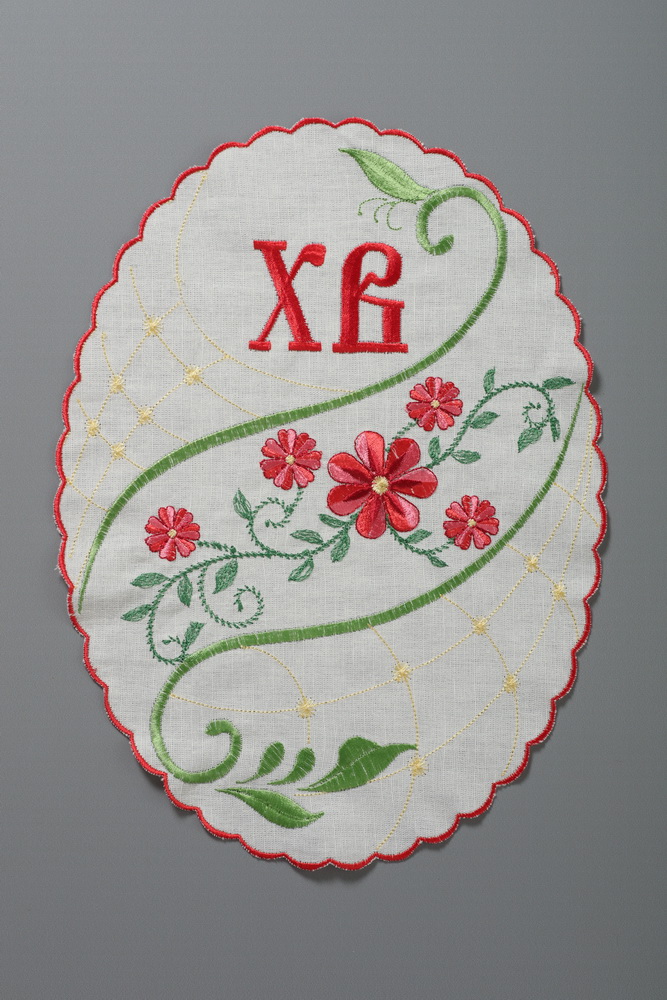 Декоративные элементы: автоматическая вышивка шелковыми нитями.