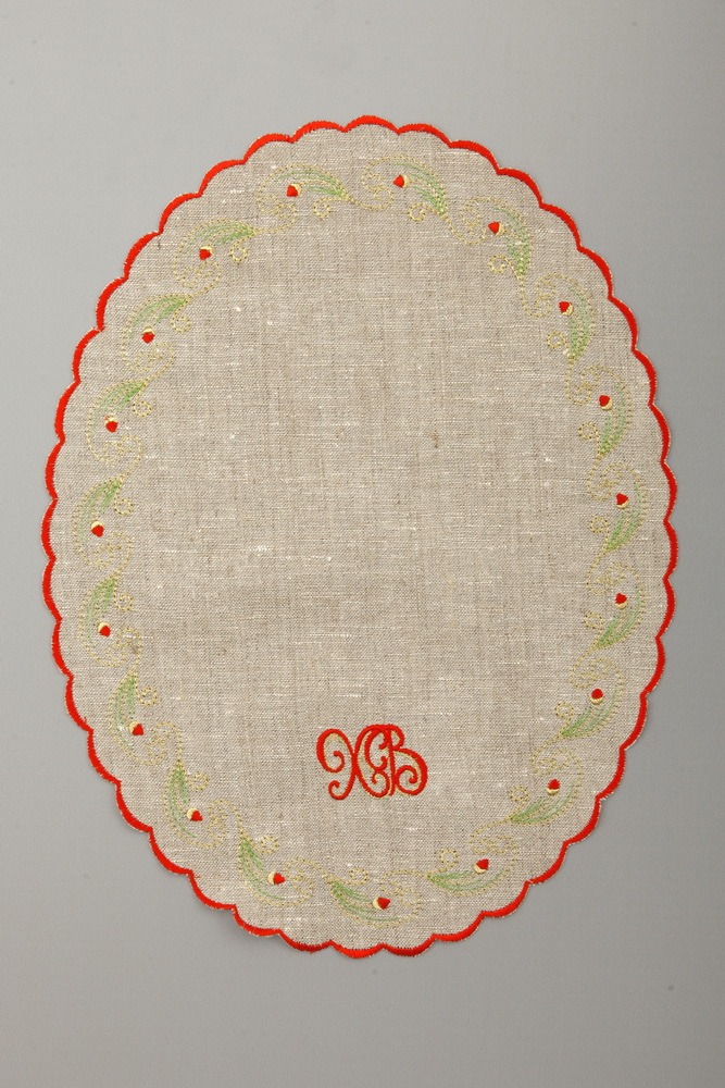 Салфетка церковная пасхальная вышитая лен овальная 28х38см (рисунок в ассортименте) №8