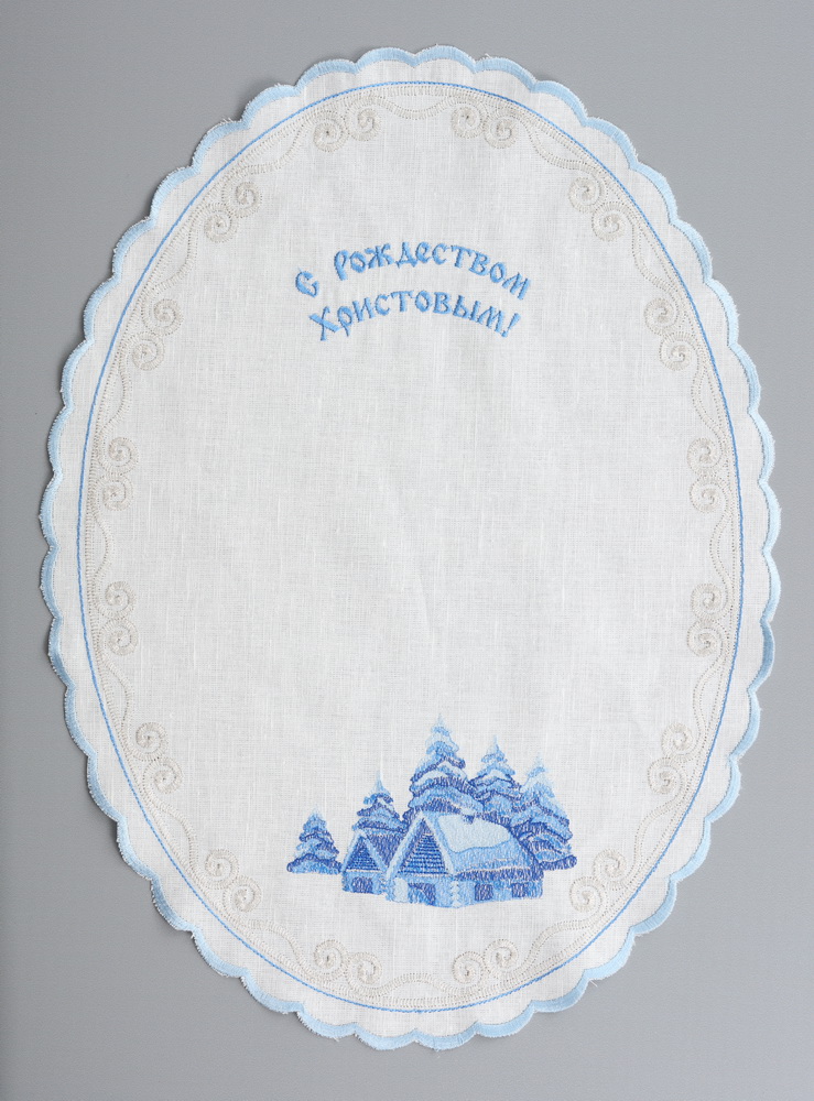 Салфетка церковная, рождественская, выполнена изо льна, декорирована автоматической вышивкой. Цветовая палитра в ассортименте.