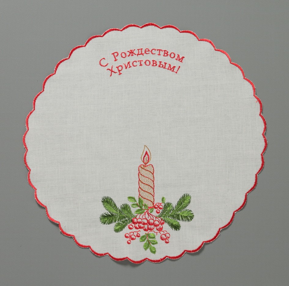 Салфетка церковная, рождественская, выполнена из хлопковой ткани, декорирована автоматической вышивкой. Цветовая палитра в ассортименте.