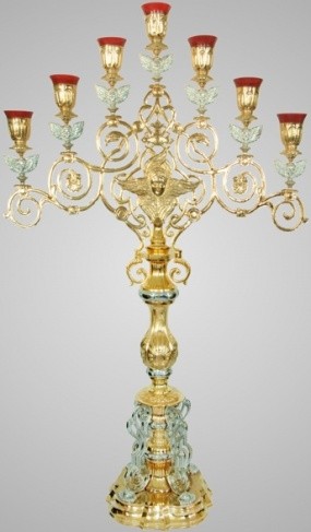 Лампады /медь/и некоторые детали /медь/ на стволе семисвечника - чеканка.