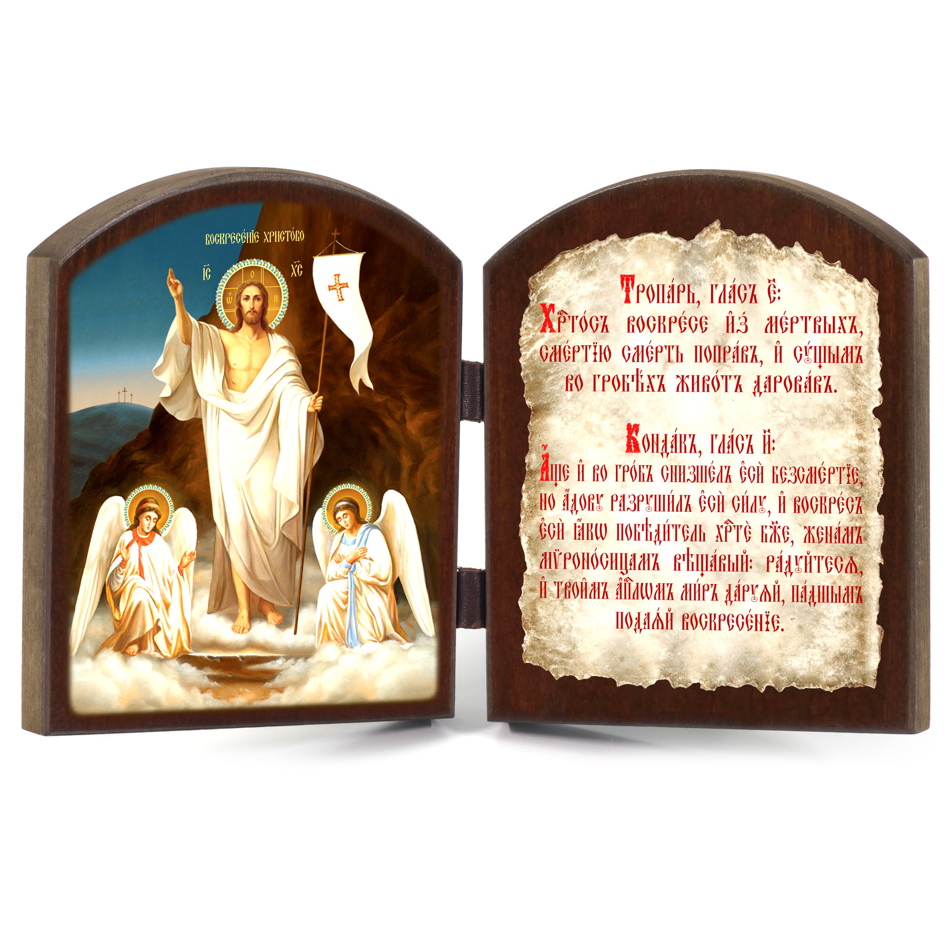 Складень резной арочный, 10х12 объемная печать, лак Воскресение Христово (с молитвой) №2