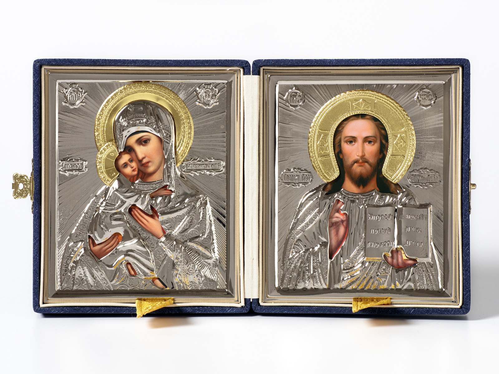Складень в футляре 11х13 зафиро, тиснение, риза объемная, никелирование Спаситель-Владимирская БМ