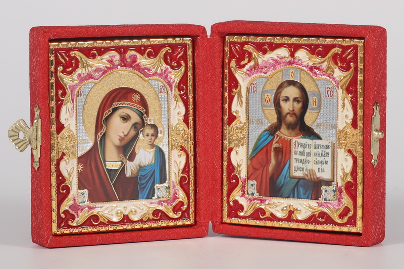 Складень в футляре 6х7 зафиро, дв.тиснение, фигурная рамка, золочение, эмаль