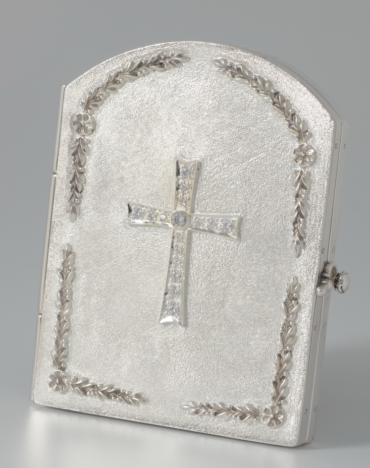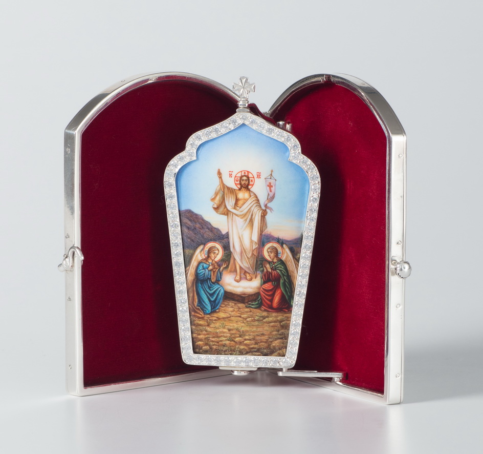 Складень ювелирный №23 / Фианиты серебро финифть / золочение / (УИН)