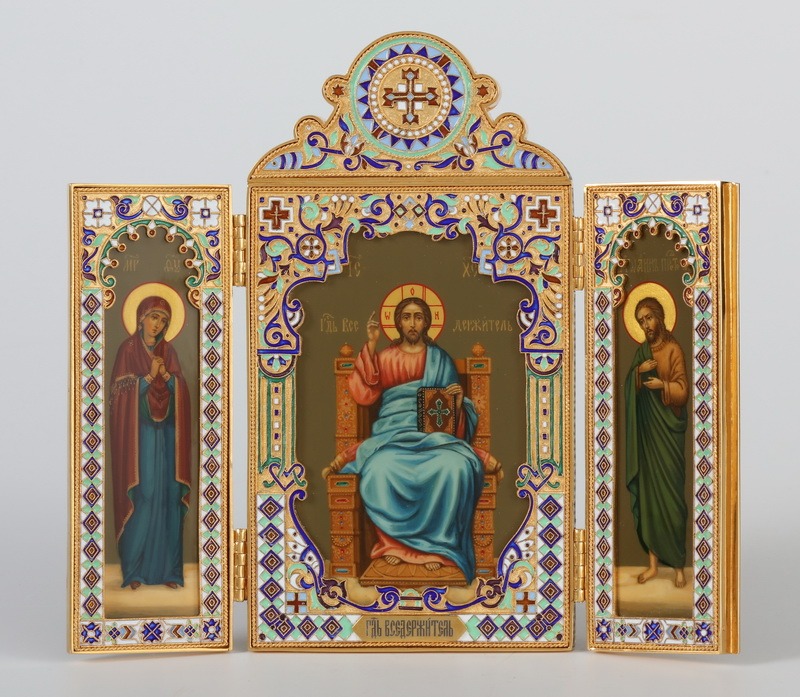 Складень ювелирный №26 серебро живопись, филигрань, эмаль / золочение / (УИН)