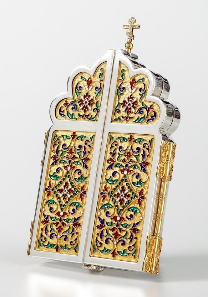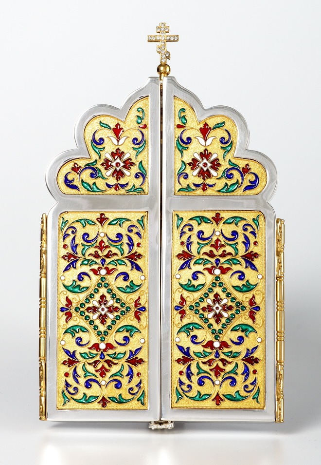 Складень ювелирный живопись, филигрань, эмаль / золочение / серебро (УИН)