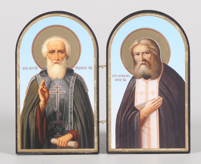 Складни деревянные 10х12 двухстворчатые, тиснение, арочные Сергий Радонежский и Серафим Саровский