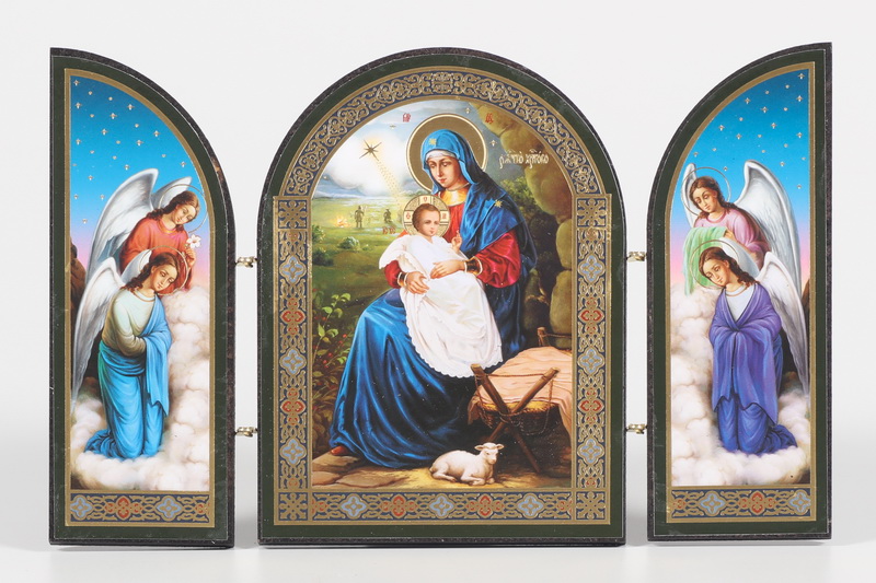 Складни деревянные 12х18 трехстворчатые, тиснение, арочные, в упаковке Рождество Христово 4