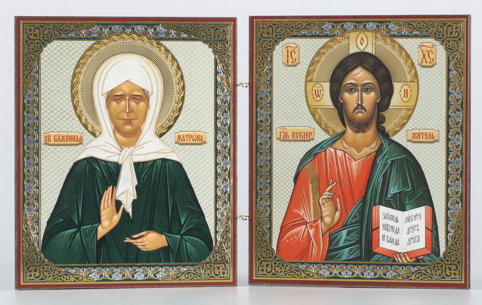 Складни деревянные 15х22 двухстворчатые, двойное тиснение Матрона Московская - Спаситель
