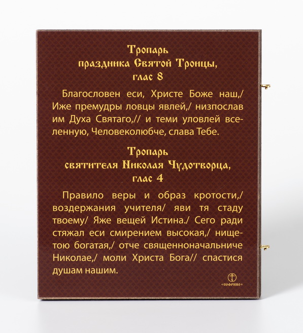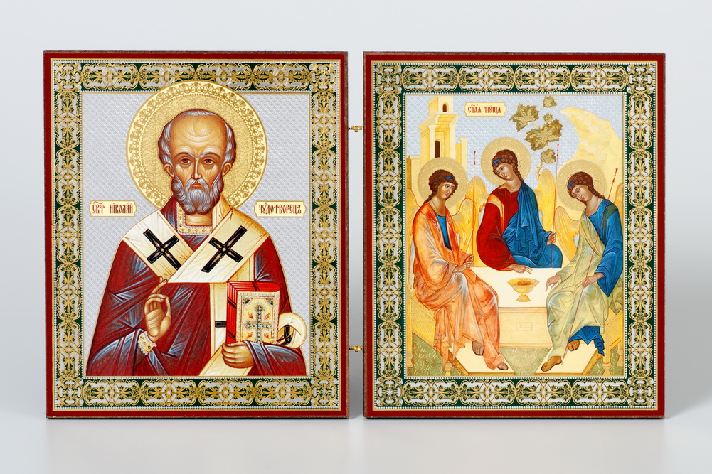 Складни деревянные 15х22 двухстворчатые, двойное тиснение Николай Чудотворец 8 - Троица (Рублевская)