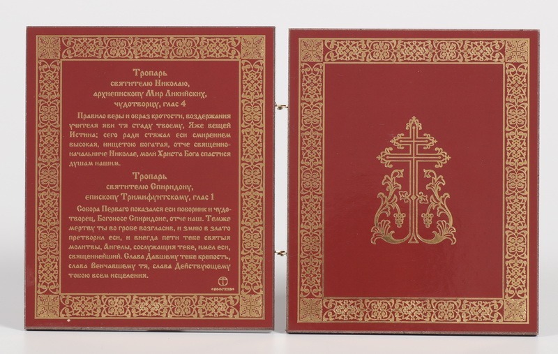 Складни деревянные 15х22 двухстворчатые, двойное тиснение Спиридон Тримифунтский - Николай Чудотворец
