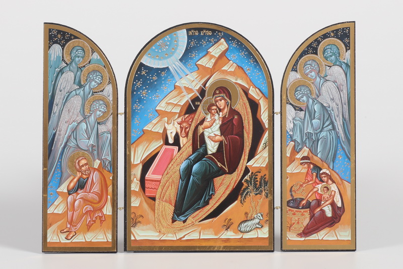 Складни деревянные 18х24 трехстворчатые, двойное тиснение, арочные, в упаковке Рождество Христово 4