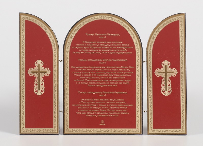 Складни деревянные 18х24 трехстворчатые, двойное тиснение, арочные, в упаковке Владимир.БМ - Серафим Саров. - Сергий Радон.