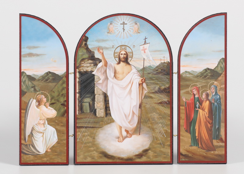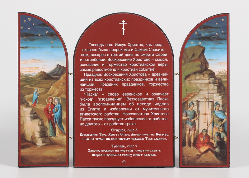 Складни деревянные 18х24 трехстворчатые, двойное тиснение, арочные, в упаковке Воскресение Христово 2