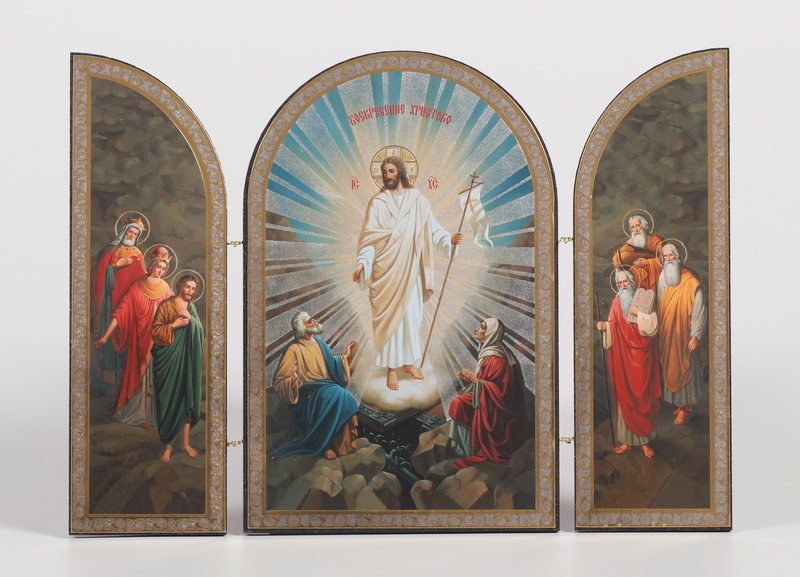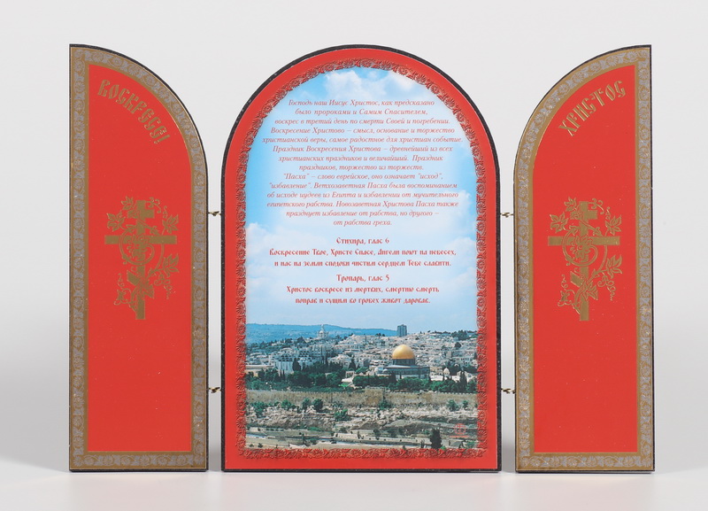Складни деревянные 18х24 трехстворчатые, двойное тиснение, арочные, в упаковке Воскресение Христово 3