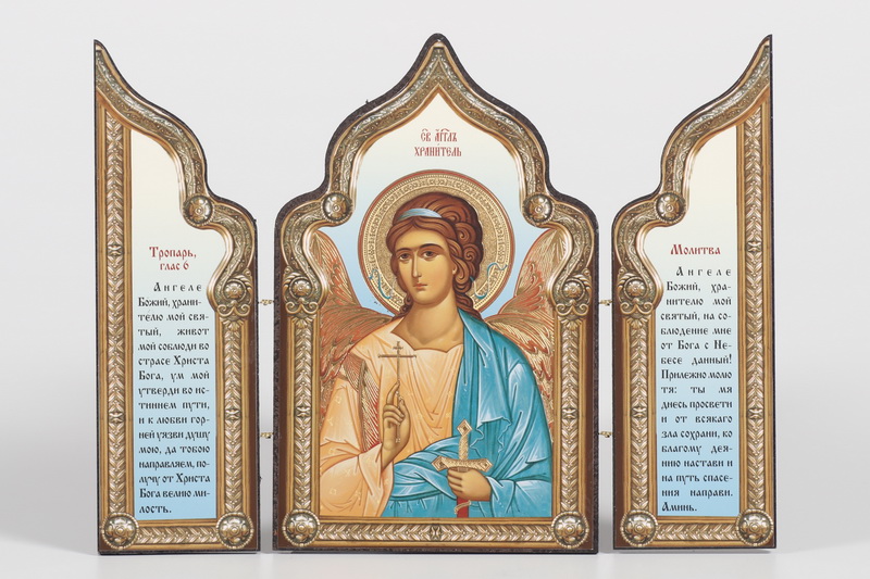 Складни деревянные 18х24 трехстворчатые, тиснение, арочные, фигурные, в упаковке Ангел-Хранитель (поясной) №2