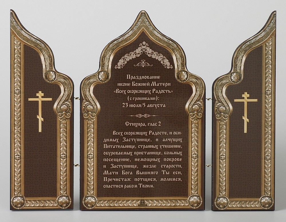 Складни деревянные 18х24 трехстворчатые, тиснение, арочные, фигурные, в упаковке Всех скорбящих Рад. с грошик. - Пантелеимон - Лука