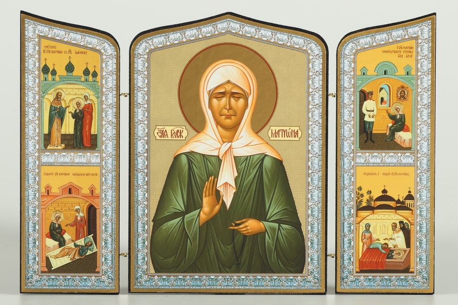 Складни деревянные 19х28 трёхстворчатые, двойное тиснение, фигурные, в упаковке Матрона Московская (2)