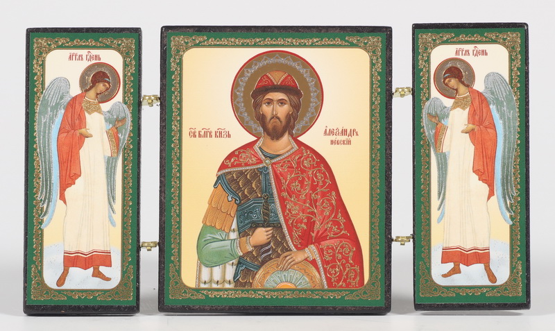 Складни деревянные 7х12 трехстворчатые, двойное тиснение Александр Невский