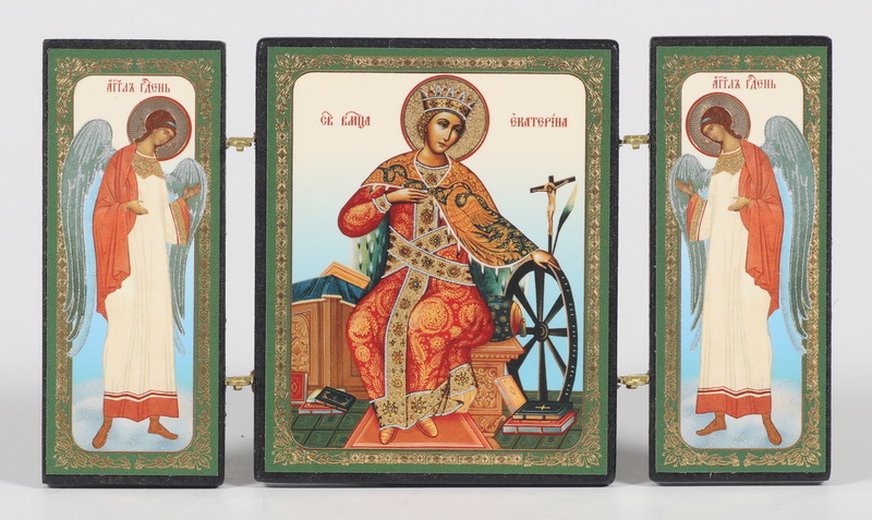 Складни деревянные 7х12 трехстворчатые, двойное тиснение Екатерина Александрийская, вмц.
