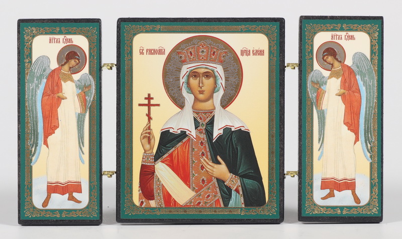 Складни деревянные 7х12 трехстворчатые, двойное тиснение Елена Константинопольская, равноап.