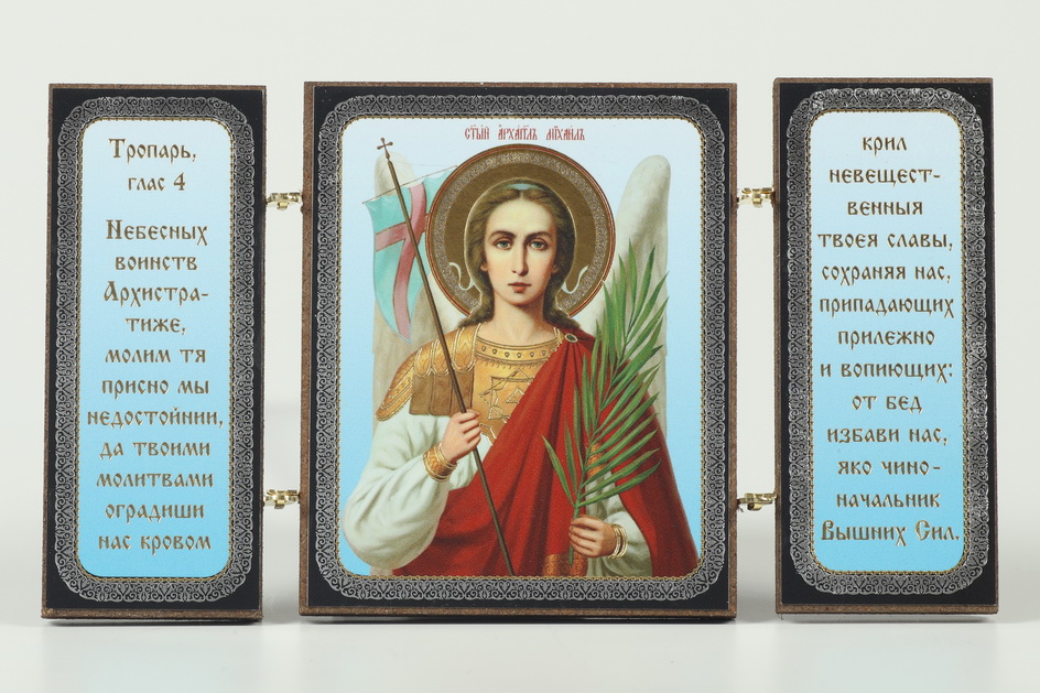 Складни деревянные 7х12 трехстворчатые, двойное тиснение Михаил Архангел