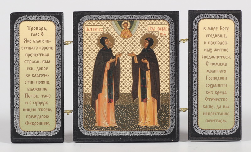 Складни деревянные 7х12 трехстворчатые, двойное тиснение Петр и Феврония