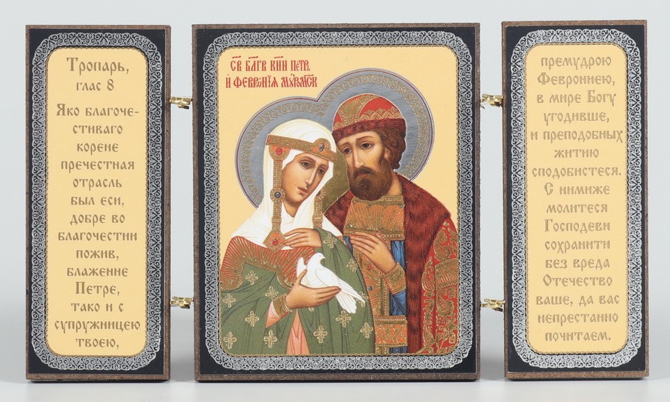 Складни деревянные 7х12 трехстворчатые, двойное тиснение Петр и Феврония 7