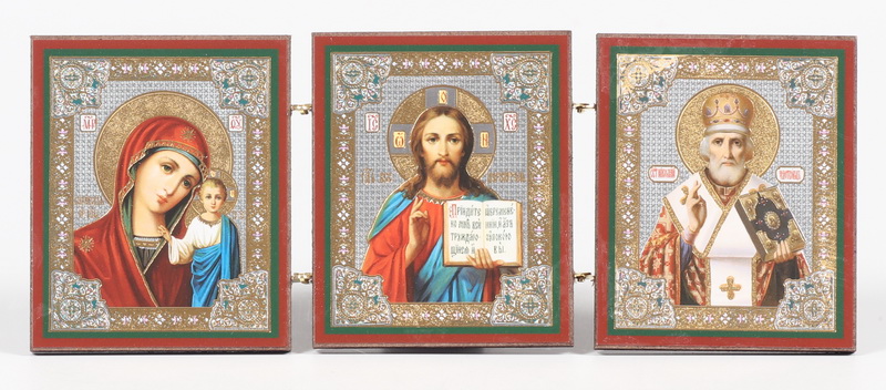 Складни деревянные 7х18 трехстворчатые, двойное тиснение Спаситель-Казанская БМ-Н.Чудотворец 14