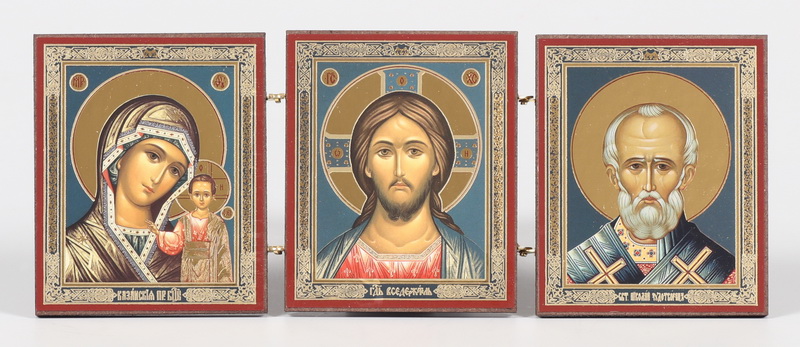 Складни деревянные 7х18 трехстворчатые, двойное тиснение Спаситель-Казанская БМ-Н.Чудотворец 29