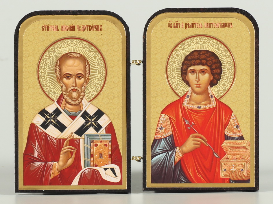 Складни деревянные 8х11 двухстворчатые, тиснение Николай Чудотворец - Пантелеимон