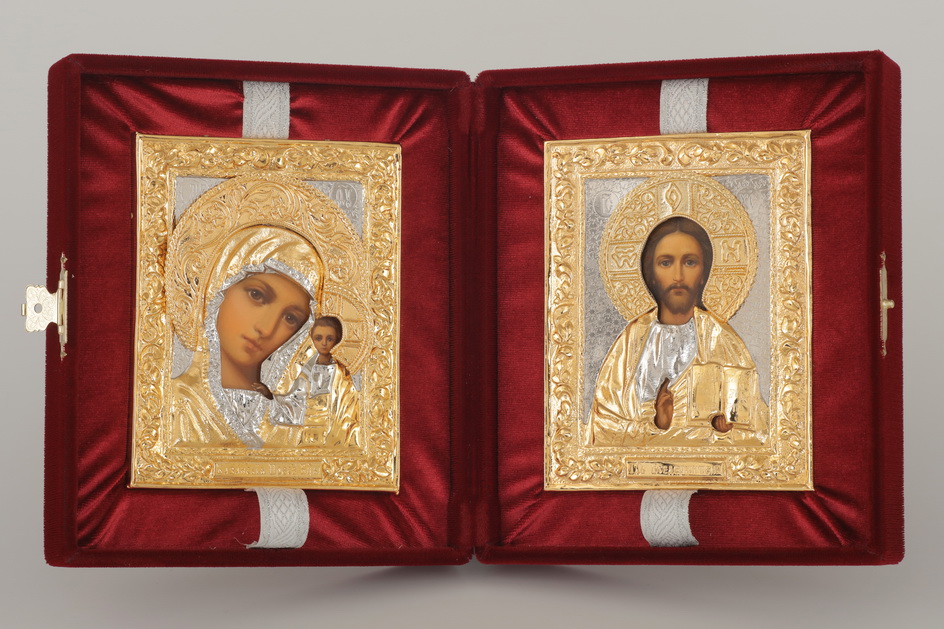 Складни живописные в футляре 11х13 масло, ризы №11, №28 (бархат) Спаситель-Казанская БМ