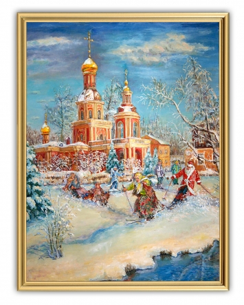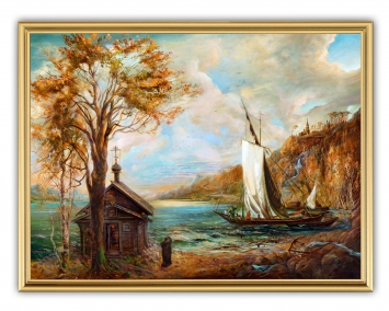 Картина 30х40 печать на холсте "под золото" в золотой рамке №6
