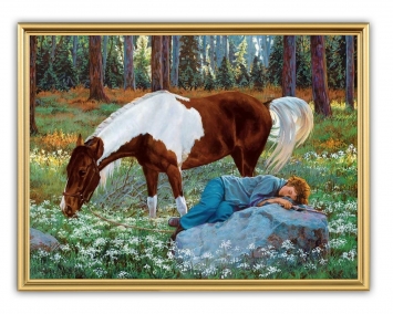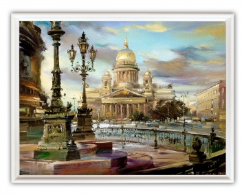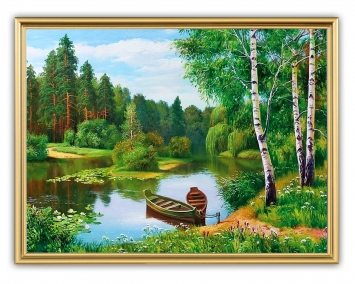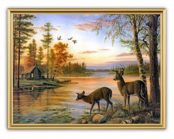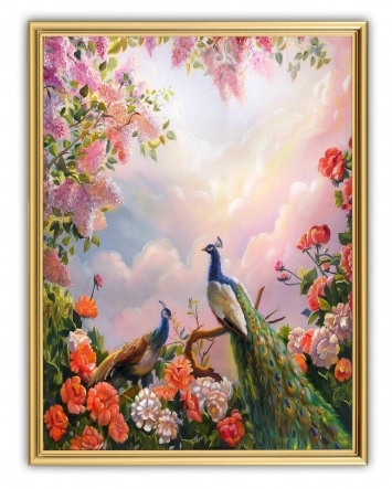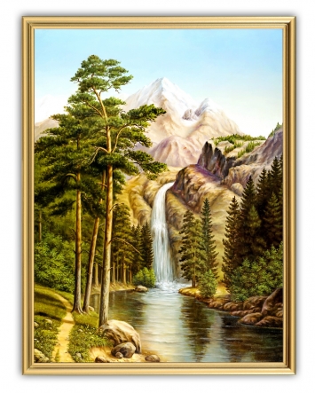 Картина 30х40 печать на холсте "под золото" в золотой рамке №1
