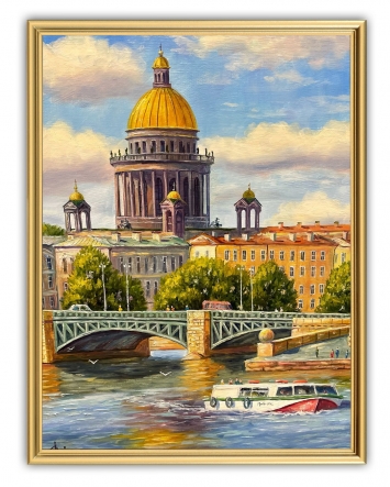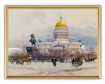 Картина 30х40 печать на холсте "под золото" в золотой рамке №8