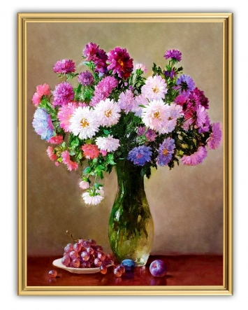 Картина 30х40 печать на холсте "под золото" в золотой рамке №1