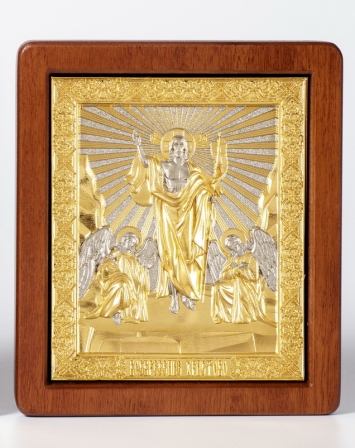 Икона в ризе "Воскресение Христово" , гальванопластика с частичным золочением