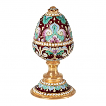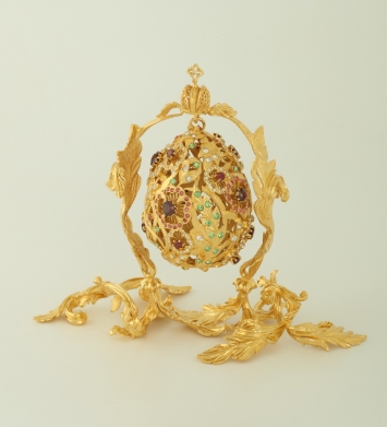 Яйцо пасхальное филигрань, эмаль, камни на подставке / золочение