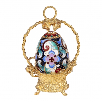 Яйцо пасхальное филигрань, эмаль в корзинке / золочение