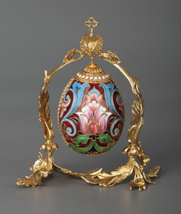 Яйцо пасхальное филигрань, эмаль, роспись на подставке / золочение