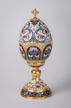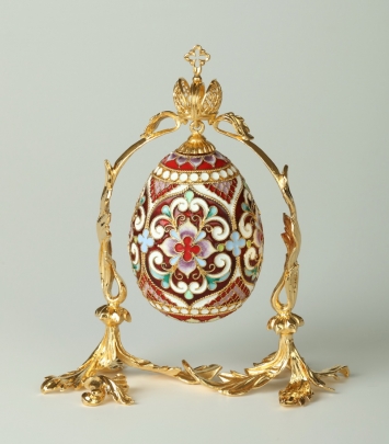 Яйцо пасхальное филигрань, эмаль, роспись, камни на подставке №2 / золочение
