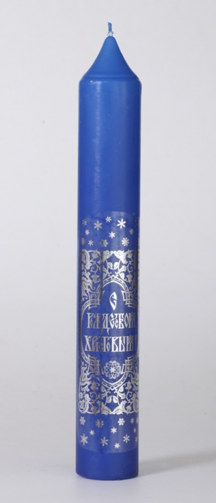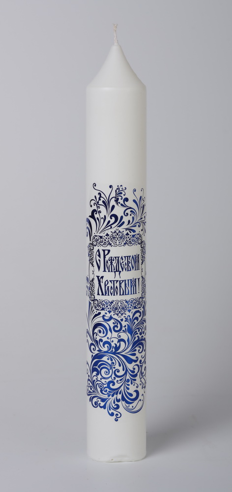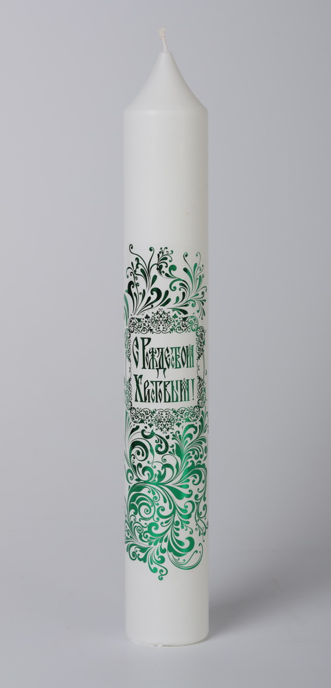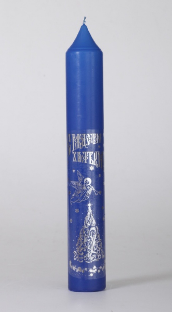 Диаконская свеча выполнена из парафина , её украшает яркая деколь Рождественской тематики.