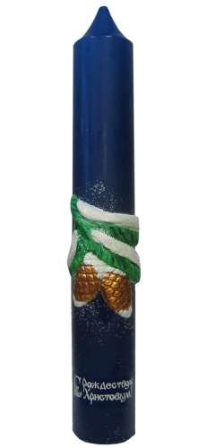 Диаконская свеча выполнена из парафина , её украшает яркая парафиновая налепка Рождественской тематики ,выполненная в технике аэрографии и ручной росписи.